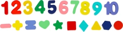 A feltűnő színek és a gondos kivitelezés támogatják a kreativitást és a logikus gondolkodást. Minden elem simára csiszolt a biztonságos játék érdekében. A készlet ideális első ismerkedéshez a színekkel, a geometriai formákkal, a számokkal és az alapvető műveletekkel.