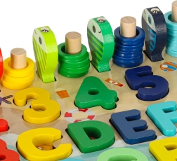 Ez a kreatív didaktikai készlet számos módot kínál a játékos tanulásra. A válogató segítségével a gyerekek gyakorolják a formák, számok és betűk felismerését, a számlálóval elsajátítják a számolás alapjait, a mágneses horgászbottal pedig szórakoztató horgászjátékban vehetnek részt, amely erősíti a kéz–szem koordinációt.