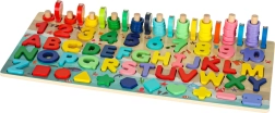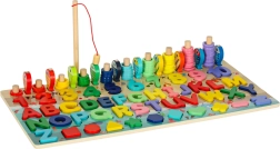 Színes fa oktatójáték 3 az 1-ben, amely ötvözi a formák és számok válogatóját, a számlálót és a mágneses horgászjátékot. Támogatja a színek, formák és számok tanulását, fejleszti a finommotorikát, a koncentrációt és a türelmet. A minőségi megmunkálású, sima élű fa elemek biztonságosak a gyermekek számára, és játékos felfedezésre ösztönöznek.