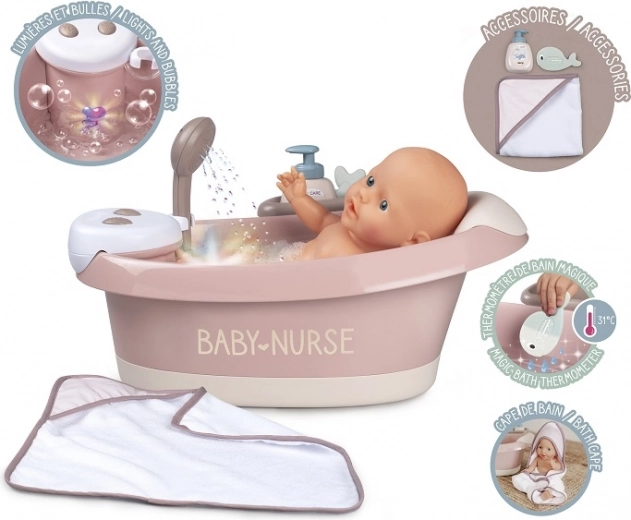 Tartalmaz hőmérőt, üvegcsét és törülközőt, amelyek még valóságosabbá teszik a játékot, és tanítják a gyerekeket a babák gondozására.