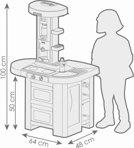 Üdvözöljük a főzős játék világában a Smoby Studio Tech Edition konyhával. Ez a kompakt és stabil konyha tágas játékteret kínál, mely lehetővé teszi a gyerekeknek, hogy minden oldalról felfedezzék kreativitásukat a főzés során.