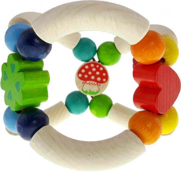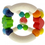 A légyölő galóca formájú fa csörgő minőségi fából és fém csengőből készült. A modern színvilág és a sima felület kíméletes a gyerekek kezeihez, míg a könnyű kialakítás megkönnyíti a megfogást. A játék újszülött kortól alkalmas, támogatja az érzékelést és az első szándékos mozdulatokat.
