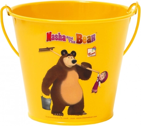 Gyermek fém vödör Bino márkától, MASHA ÉS A MEDVE mintával, 0,75 l űrtartalommal. Tartós, könnyű, ideális a kertbe, homokozóba és strandra. 3 éves kortól.