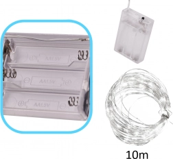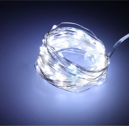 Varázsolj meghitt hangulatot otthonodba a 10 m hosszú, 100 LED-es fényfüzérrel. A rugalmas drót könnyen elrejthető az ágacskákban vagy dekorációkban, így finom, téli fehér megvilágítást hozhatsz létre. A elemes tápellátásnak köszönhetően bárhová elhelyezheted – kábelek és konnektor nélkül.