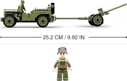 A dzsip, az utánfutó és az ágyú kombinációja rengeteg játékszcenáriót kínál – a felderítéstől a konvojvédelemig. A részletes elemek és a funkcionális arányok valósághű megjelenést adnak az építménynek.