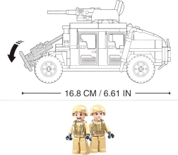 A készlet minőségi, masszív anyagból készült, és a LEGO, COBI és MEGA BLOKS kompatibilitásnak köszönhetően gond nélkül bővíthető további elemekkel. Ideális választás 6 éves kortól azoknak a kis építőknek, akik kedvelik a katonai témákat és a terepjáró járműveket.