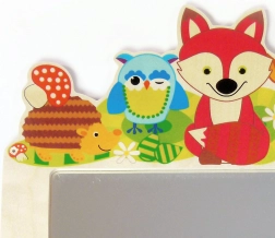 Ez a minőségi fa fogas a játékos Erdei állatok motívummal színt és rendszert visz a gyerekszobába. Az öt masszív akasztóval könnyedén elrendezhetők a kabátok, pulóverek, hátizsákok és kiegészítők. A beépített, törhetetlen plexi tükör könnyű, biztonságos és ideális a mindennapi használathoz.