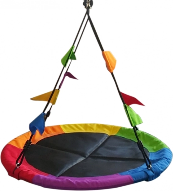 Gólyafészek hinta gyerekeknek egy nagyszerű kültéri játék a kis felfedezők számára. Színes zászlókkal van felszerelve, amelyek esztétikus megjelenést és szórakozást biztosítanak, ugyanakkor tartós anyagból készültek, masszív szerkezetével pedig garantálja a biztonságot és a stabilitást.