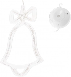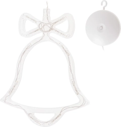 Tedd meghittebbé a téli estéket az elegáns, akasztható, csengő alakú dekorációval. A beépített LED-ek meleg fehér fénye varázslatos hangulatot teremt otthonodban. A elemes tápellátásnak és a tapadókorongnak köszönhetően könnyedén rögzítheted ablakra, ajtóra vagy falra – kábelek és gond nélkül.