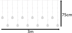 A mi szép LED fényfüggönyünk műanyag gömbökkel hoz gyönyörű fényt otthonába. Többszínű fényhatások élénkítik bármelyik teret, és átalakítják a hétköznapi függönyöket ünnepi dekorációvá. Ez a függöny kiváló kiegészítője a modern enteriőröknek, amelyek minden helyiséget barátságos sarokká alakítanak, ideális a hideg téli estékre.