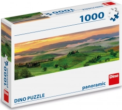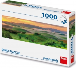 A DINO panorámapuzzle a varázslatos naplemente zöld táj fölötti motívumával nyugodt hangulatot és fókuszált alkotást kínál. A pontos kivágásnak és az erős kartonnak köszönhetően a darabok tökéletesen illeszkednek, a 96 × 32 cm-es kész kép pedig szinte hív a felragasztásra és keretezésre.