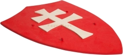 Könnyű, fából készült pajzs kettős kereszt motívummal, kis lovagoknak és hercegnőknek. Minőségi kidolgozás, sima élek és biztonságos, természetes anyag támogatja a koordinációt és a durva motorikát kreatív játék közben.