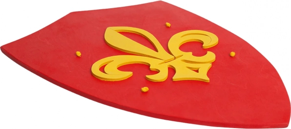 A markáns piros szín és a sárga liliom középkori bájt kölcsönöz a pajzsnak. Remekül illik jelmezekhez, és a gyerekszoba dekorációjaként is megállja a helyét.