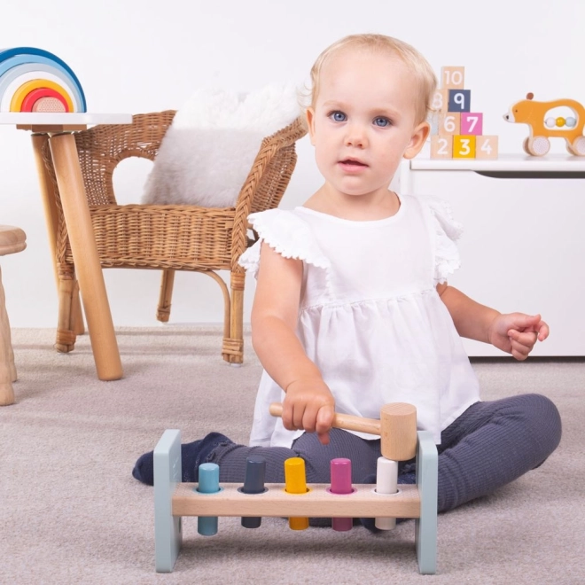 A kalapálás támogatja a kéz–szem koordinációt, a koncentrációt és a türelmet – ideális első fából készült játék 12 hónapos kortól.
