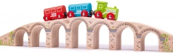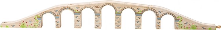 A BIGJIGS RAIL híd lenyűgöző magasságot és hosszúságot ad a vonatpályádnak. A masszív fa kialakításnak és a sima csatlakozásoknak köszönhetően a vonatok egyenletesen haladnak, miközben az ívek alatt bőséges hely jut még a magas rakományoknak is. A kőfalat idéző, elegáns díszítés valósághű megjelenést kölcsönöz a készletnek.