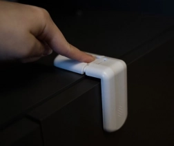 A praktikus MALATEC gyermekbiztonsági zár megbízhatóan megakadályozza a szekrények és fiókok véletlen kinyitását. Az erős, kétoldalas ragasztószalagnak köszönhetően stabilan a helyén marad, védelmet nyújt a veszélyes tárgyakhoz való hozzáféréssel szemben, és megelőzi az ujjak becsípődését. Egyszerű, szerszám nélküli szerelés és könnyű, nyomással történő nyitás biztosítja a felnőttek számára a gyors hozzáférést a tartalomhoz.