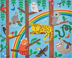 A vidám dzsungellakók és az élénk színek támogatják az alakfelismerést, a koncentrációt és a gyerekek finommotorikáját.