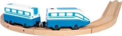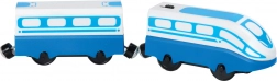 A Bino márkájú nagysebességű elektromos szerelvény örömet szerez a kis mozdonyvezetőknek: elektromos hajtás 1× AA elemmel, kompatibilis minden szabványos fa sínnel, valamint tartós, egészségre ártalmatlan anyagok teszik belőle remek vonatot a mindennapi játékhoz. A mozdony és a kocsi mágnesekkel kapcsolódnak, és lenyűgöz a valósághű megjelenéssel és élénk színekkel.