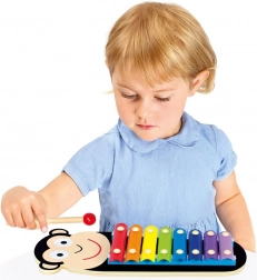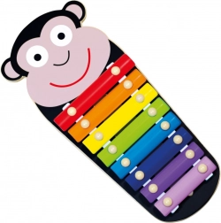 Gyerek xylophon majom motívummal. 3 részes szett 8 fém hanglappal, amelyek teljes hangterjedelmű játékot kínálnak. A xylophon lehetőséget ad a gyerekeknek megismerkedni a zene alapjaival és fejleszteni zenei tehetségüket. Ideális játék az első zenei lépésekhez. Nem mérgező festéssel kezelt, lekerekített sarkokkal és sima felületekkel a gondtalan zenélésért. 18 hónapos kortól ajánlott. Figyelmeztetés! 18 hónapos kor alatt csak felnőtt felügyelete mellett használható. Főbb jellemzők: 3 részes szett, 8 hang, fejleszti a zenei tehetséget