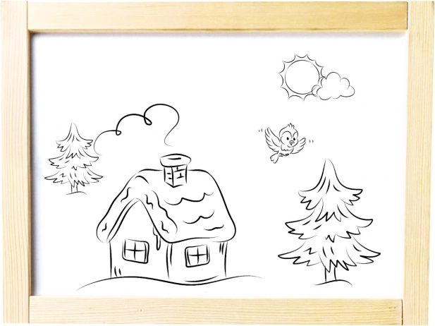 A csomag mindent tartalmaz: krétát, filcet, szivacsot és több mágneses képet. A tábla gyorsan összecsukható és helytakarékosan tárolható, így nem foglal sok helyet. A két munkafelületnek köszönhetően két gyerek is alkothat egyszerre.