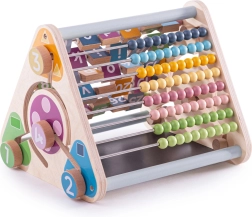 Ez a minőségi fa aktív háromszög órákon át tartó, értelmes szórakozást nyújt a gyerekeknek. A stabil szerkezetnek és az átgondolt, apró alkatrészek nélküli kialakításnak köszönhetően ideális otthoni játékra és óvodákba is. A gyerekek játékos formában gyakorolják a számolást, a betűk és állatok felismerését, a szem–kéz koordinációt, valamint a kreativitást a krétatáblán.