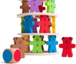 Fedezze fel a Leeső Medvéket, a szórakoztató és egyben oktatási fa játékot gyerekek számára. Ez a játék segíti a finommotorika, a stratégiai gondolkodás, valamint a színek és számok felismerésének fejlesztését. A cél, hogy a medvetornyot minél magasabbra építse anélkül, hogy az összedőlne.