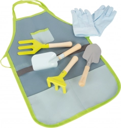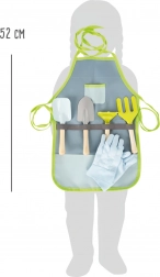 - Komplett szett: kötény, kesztyű és 4 darab szerszám (ásó, gereblye, lapát, villa)