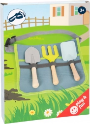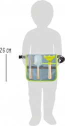 A small foot márkájú, praktikus gyermek övtáska kerti szerszámokkal lehetővé teszi a kis kertészeknek, hogy segítsenek a kertben, miközben szabadon marad a kezük. A szett 3 fémből készült, fa nyelű szerszámot tartalmaz – lapátot, gereblyét és ásót – gyermekméretben. Az állítható deréköv csattal és a strapabíró zsebek biztonságos tárolást biztosítanak. A kerti játék fejleszti a motorikát, a szerepjátékot és a természethez való viszonyt.