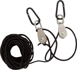A hosszú és masszív kötél kényelmes emelést és leengedést tesz lehetővé biztonságos távolságból – ideális kisházakhoz és mászókákhoz.