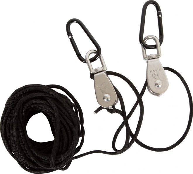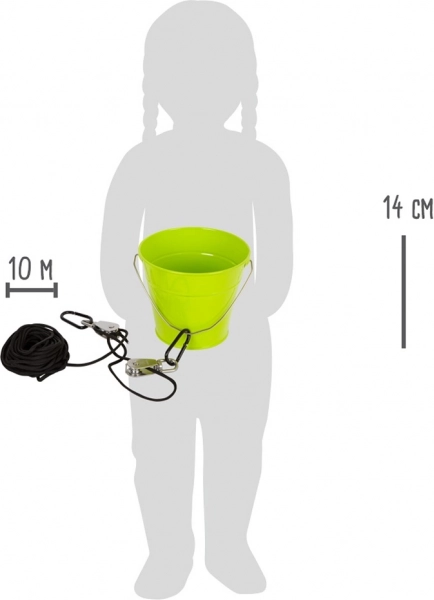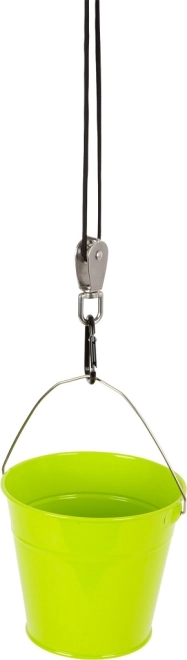 Ez a masszív készlet ötvözi a strapabíró fém vödröt, az erős, 10 m-es kötelet és a kettős csigát karabinerekkel a könnyű felakasztáshoz. A gyerekek játékos formában tanulják meg a mechanikai előnyt, és minimális erőfeszítéssel emelnek kisebb tárgyakat magasba.