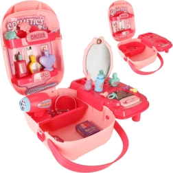 Kozmetikai szett hordozható bőröndben kis parádésoknak és leendő fodrászoknak, rengeteg kiegészítővel a kreatív játékhoz: hajszárító, fésű, tükör, csatok, gyűrűk, karkötők és színes üvegcsék. A bőrönd átlátszó névjegyablakkal rendelkezik – helyezzen be egy képet vagy a gyermek nevét, és alkosson egyedi szettet a szerepjátékhoz. Kiváló a finommotorika és a szociális készségek fejlesztésére. Nem tartalmaz valódi kozmetikumokat.