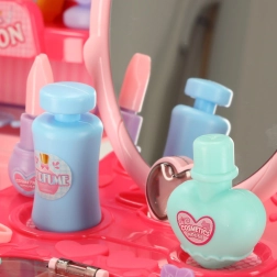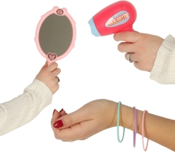 A gyerek műanyag hajszárító és a bájos tükör serkentik a képzeletet, és hiteles élményt adnak a játéknak – biztonságosan, valódi kozmetikumok nélkül.