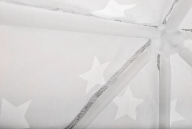 Kruzzel gyereksátor szürke–rózsaszín színben csillagokkal, 6 bejárattal és függönyökkel. Egyszerű összeszerelés, könnyű szerkezet, méretek 123×123×140 cm.