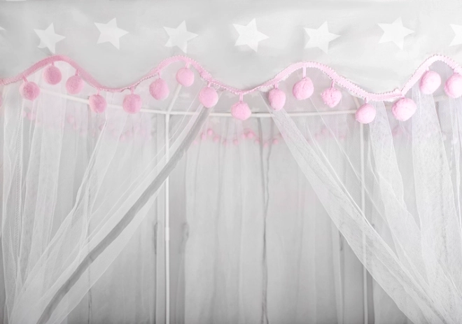 Szürke–rózsaszín Kruzzel gyerek sátor függönyökkel és pomponokkal