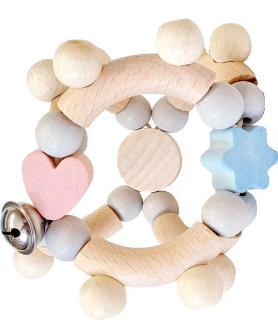 Hess márkájú fa motoros csörgő lenyűgözi pasztell színeivel és csengőjével, melyek támogatják a képzelőerőt és javítják a gyermek finommotorikus készségeit.