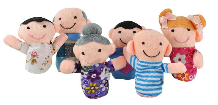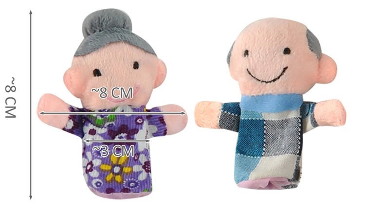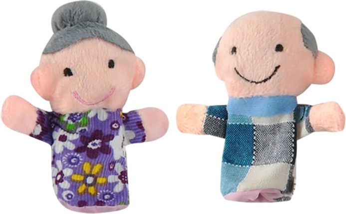 Hat bábu – anyuka, apuka, fiú, lány, nagymama és nagypapa – segít a cselekmény, a szerepek és a gyerekek együttműködésének fejlesztésében.