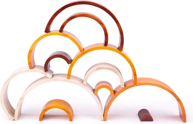 Ez a nagy fa szivárvány tömör fából készült, és nem mérgező festékekkel van színezve. Nemcsak játékként, hanem stílusos dekorációs elemként is használható gyerekszobában vagy óvodában. A szivárvány nem igényel szabályokat és útmutatókat, így fejleszti a gyerekek kreatív gondolkodását.