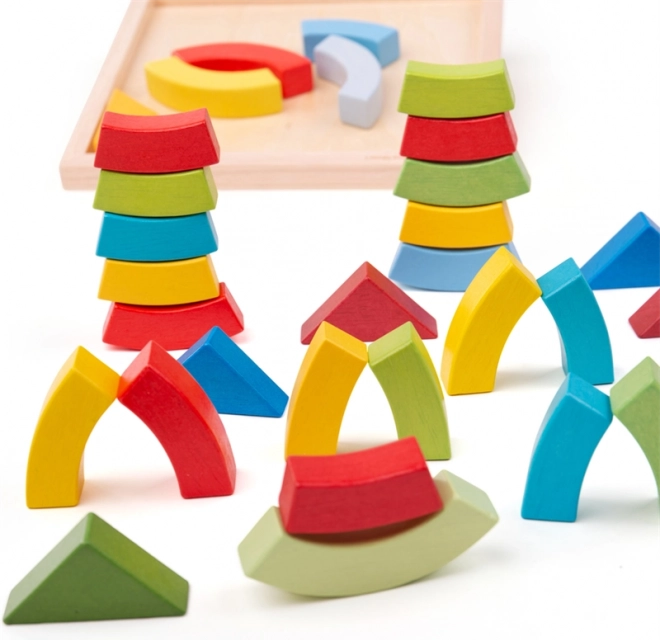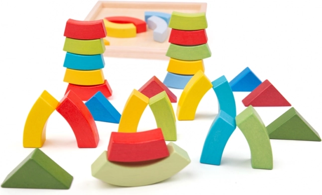 A BIGJIGS TOYS fa ívei és háromszögei ideálisak a szabad játékhoz. A gyerekek rakosgathatnak, építhetnek és kísérletezhetnek az alakzatokkal és az egyensúllyal, ezáltal természetes módon fejlesztik képzeletüket és logikus gondolkodásukat. A praktikus fa talp megkönnyíti a tárolást és a hordozást.