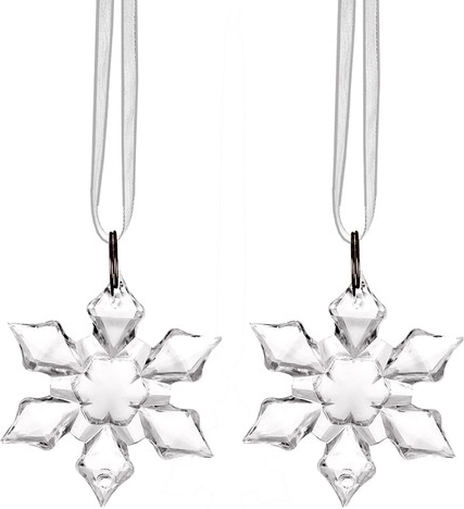 Elegáns, két darab átlátszó, hópehely alakú díszből álló készlet ünnepi hangulatot ad otthonának. A könnyű, törhetetlen műanyag kialakításnak köszönhetően biztonságos a háztartásban, gyönyörűen csillognak nappali és esti fényben, és könnyen felakaszthatók tüllszalagok segítségével a fára, ablakra vagy az ünnepi dekorációra.