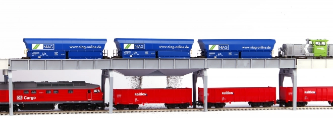 A Piko márka nagy részletességű, kirakodó funkcióval ellátott hídja a beton keretszerkezet hű mása, amely teljes értékű kirakodóállomással bővíti terepasztalát. A rendszer megkönnyíti a vagonok vezetését a garat fölött, és a kulisszák révén lehetővé teszi a önürítős zsilipajtók automatikus nyitását.