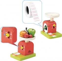 A tömör fa masszív felépítése és a színes, minőségi lakkozás hosszú élettartamot és biztonságos használatot biztosít. A játék támogatja a finommotorika, a logikus gondolkodás és a képzelet fejlődését boltos, konyhás vagy piacos szerepjáték közben.