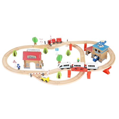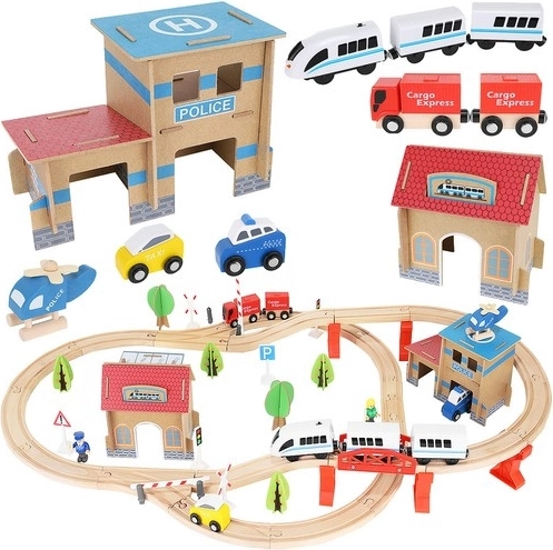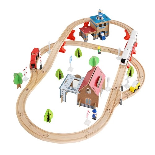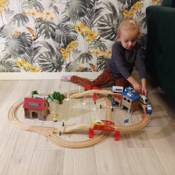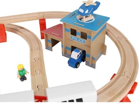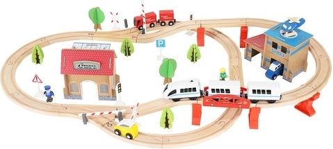 - 89 darabos készlet – A készlet tartalmaz pályaelemeket, vonatot, autókat, rendőrségi helikoptert, állomást, hidat, fák és közlekedési táblákat. A vonat és a teherautó mágneses kapcsolódású, nincs benne törékeny horgok.