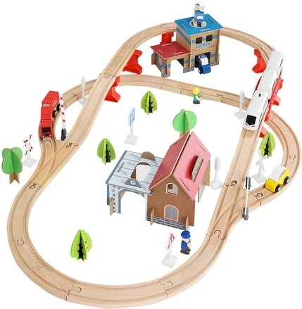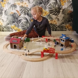 A fa vonatkészlet tökéletes választás minden gyermek számára, fejleszti a kreativitást és mozgáskoordinációt, miközben a biztonságot is szem előtt tartja.