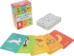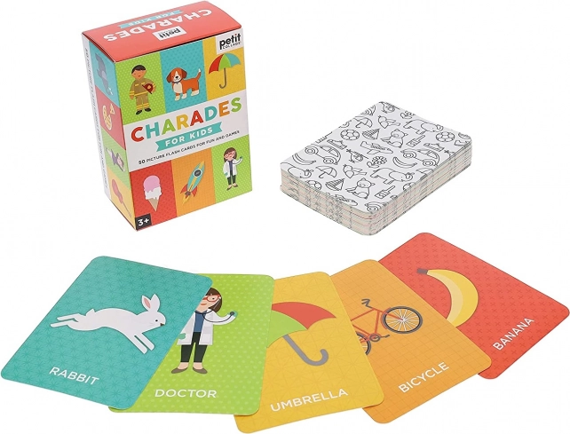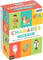 A Petit Collage márka Charades játéka gyors és vidám szórakozást kínál, miközben fejleszti a képzelőerőt, a finommotorikát és a kommunikációs készségeket. A játékosok felváltva mutogatják el a kártyák képeit – hangok megengedettek, de szavak nem. Aki kitalálja, elviszi a kártyát. Az nyer, aki a legtöbb kártyát gyűjti.