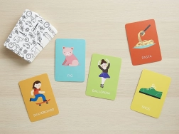 Az áttekinthető kategóriáknak (állatok, ételek, foglalkozások és mások) köszönhetően a játék a kisebbek számára is könnyen érthető. A kompakt csomagolás elfér a hátizsákban, így ideális utazáshoz, látogatásokhoz és családi estékhez.