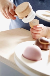Fából készült Fagylalt Állvány Fresh tökéletes játék kicsi árusítóknak. Kínál változatos fagylalt finomságokat és mágneses kanalat, ami garantálja a biztonságos és egyszerű kezelhetőséget. Természetes megjelenésével ösztönzi a képzelőerővel teli játékot.