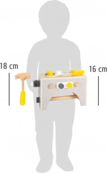 Kalapács, villáskulcs, csavarhúzó, csőfogó és satu – mind tartós fából. A gyerekek játékosan próbálhatják ki az alapvető „mester” készségeket.