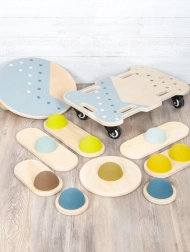 Ez a játék nemcsak szórakoztató, hanem terápiás célokra is alkalmas, mivel segíti a fizikai erőnlét, az egyensúly és a koordináció fejlesztését. A gömbölyded formák és a természetes fa elemek egyszerű dizájnja esztétikailag kellemes kiegészítőt alkot minden szobában.