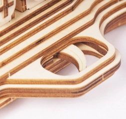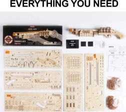Szerezd meg az egyedülálló szerelőkészletet, mely oktatást és szórakozást kombinál fa mechanikus sörétes puskával. Várhatók precíz részletek és működő alkatrészek, melyek lehetővé teszik gumilövedékek kilövését fa figurákra. Ez a modell a design és a mechanika tökéletes kombinációja, amit minden modellező imádni fog.