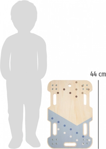 A fa egyensúlyozó deszka Adventure ideális azoknak a kisgyerekeknek, akik aktív mozgásra vágynak. A kötéllyuk és az oldalsó kerekek révén a manőverezés könnyű, az nyílások körüli védelem pedig megvédi a kezeket. Az egyszerű és természetes kivitelű deszka tökéletesen illik bármely gyerekszobába.